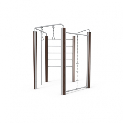 训练功能:a.肋木:锻炼腹部肌肉和灵活性;b.爬杆:可增强臂力及腰力;c.爬链:可锻炼腰力、增强臂力;d.吊环:锻炼上肢拉力和耐力, e.单杠:增强肩背和臂部力量,锻炼身体协调性。