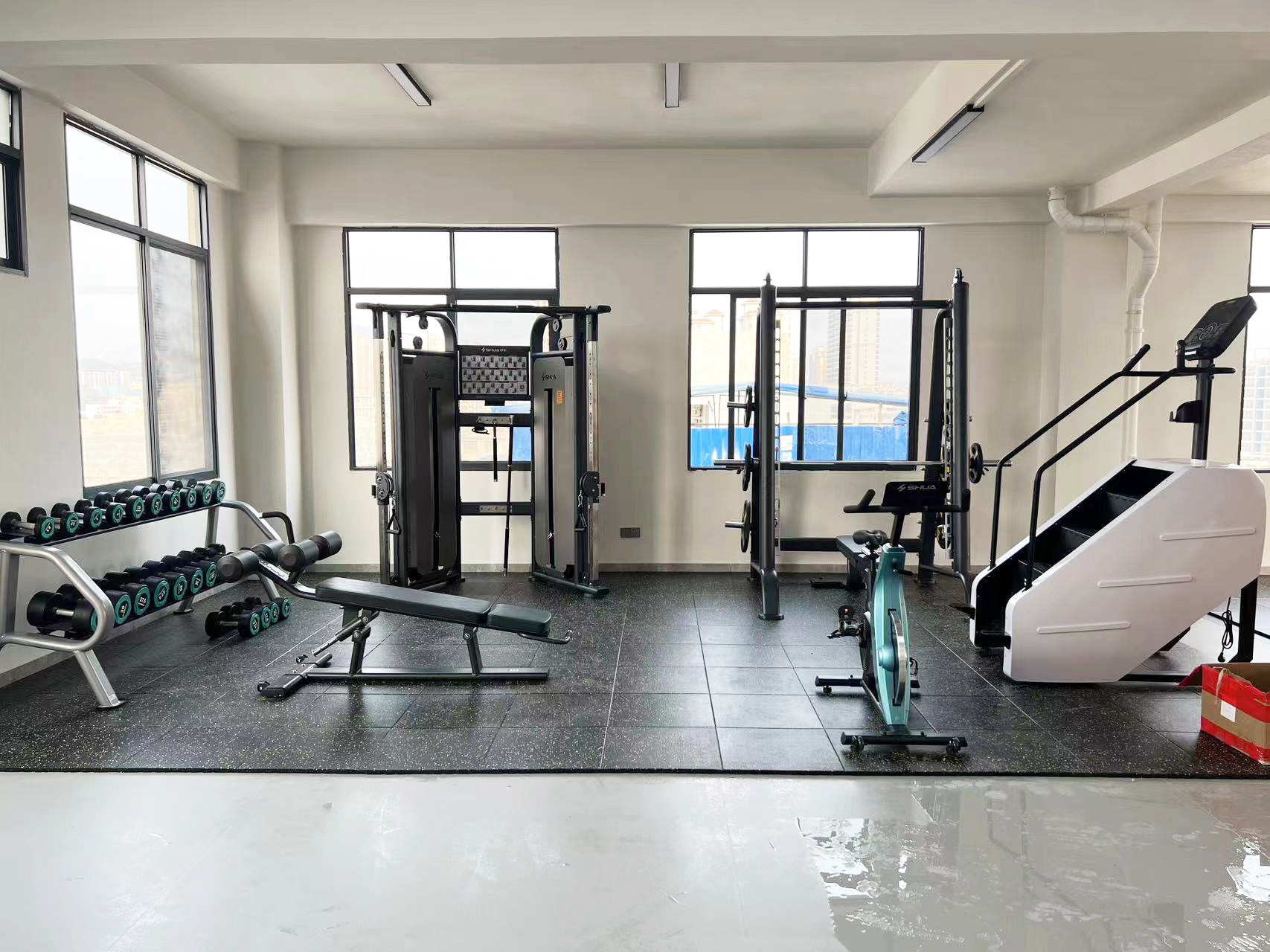 力量器械配置了jiuyou.com可调式双滑轮多功能训练器(小飞鸟)SH-G6820史密斯机训练架SH-G6853腹肌练习椅SH-G6879 、康健10付哑铃套组,依据锻炼方式不同,能够满足日常多肌群训练(胸、肩、背、腿),让企事业职工在有限的器材里能够得到全方位锻炼身体肌肉。让职工身体更健硕,在工作中释放激情活力,打造完美职场形象。在运动过程中增进职工之间的情感交流,促进各部门紧密融合,增强职工归属感,增强企事业的凝聚力。
