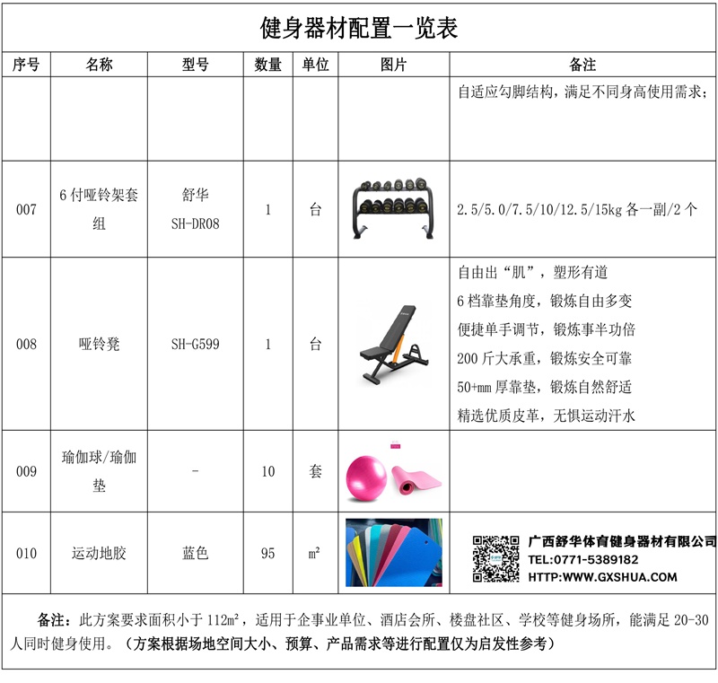 此方案要求面积小于95m²,适用于企事业单位、酒店会所、楼盘社区、学校等健身场所,能满足15-20人同时健身使用。(方案根据场地空间大小、预算、产品需求等进行配置仅为启发性参考)