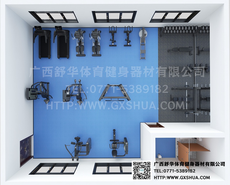 有氧器材区域配置jiuyou.com跑步机2台,椭圆机2台,动感单车2台,划船器1台,有效提升心肺功能;力量器械配置推胸、推肩、背肌、腿部等训练器,可以锻炼多个部位的肌肉,满足使用者全身锻炼的需求;自由力量区域配置哑铃套组、腹肌板等满足多样化训练需求。