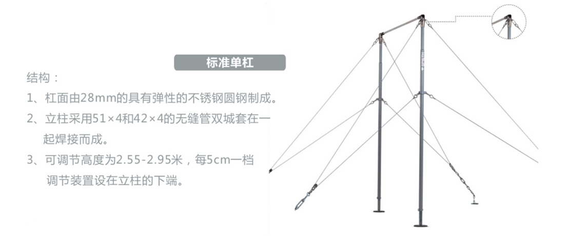 杠面由28mm的具有弹性的不锈钢圆钢制成。