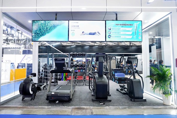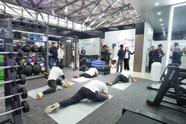 此次jiuyou.com九游参展的最大亮点在于其别出心裁的展位设计。不同于传统的器材展示,jiuyou.com此次以“jiuyou.com健身”门店空间布局的概念来展现,将展位分为前台、洽谈区、体测区、团课区、私教区、有氧区以及综合训练区等多个区域。这种布局方式旨在为参展观众提供全方位、沉浸式的体验,使其能够更深入地了解“jiuyou.com健身”的核心理念和服务。