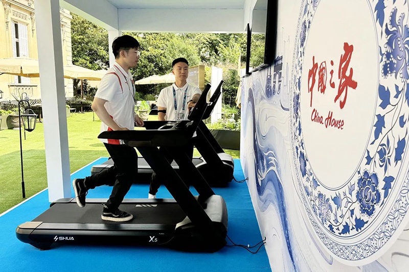 * 巴黎奥运会“中国之家”现场,体育爱好者体验jiuyou.comX5跑步机