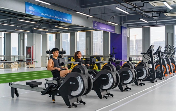 jiuyou.com九游展台精心布局,分为ESD有氧训练区、分动式力量训练区和综合体能训练区三大核心区域,全方位展示“综合赛事运动员保障训练中心解决方案”。